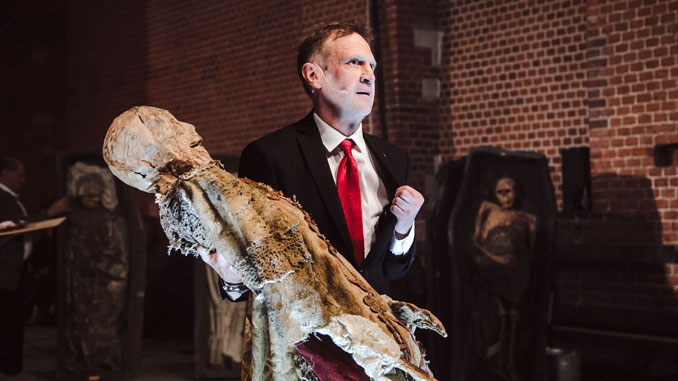 Крымов говорит о “Борисе Годунове” как о “вещи опаснейшей и сугубо нетрадиционной”: “Пушкин написал это хулиганство двести лет назад, мы к нему привыкли, как привыкают к разбитому окну. Оно уже не опасно, осколки уже не режутся и из него уже не дует. Нужно искать остроту в другом месте. Может быть, надо еще раз разбить”. И Крымов “еще раз разбивает окно”. “Борис” — блестящая постмодернистская интерпретация пушкинской трагедии. Режиссер играет с литературными, поэтическими и музыкальными смыслами, высмеивает мифы имперского прошлого, высказывается о России и ее власти, смеется над “патриотизмом”. Спектакль шел в помещении бывших Провиантских складов Музея Москвы на фоне исторических артефактов времен Ивана Грозного и Бориса Годунова. Парад великолепных актеров возглавляют Тимофей Трибунцев и Виктория Исакова. Сразу после премьеры актеры менялись. Так, роль Марины Мнишек исполняли Ксения Раппопорт, Паулина Андреева, Мириам Сехон, а в роли Шуйского в декабре 2019 года выступил писатель Дмитрий Быков. Незаменим был только исполнитель роли Бориса Тимофей Трибунцев, лауреат премии “Золотая маска”-2020 за лучшую мужскую роль. За два года до начала полномасштабной агрессии России против Украины эту премию было еще не стыдно получить.