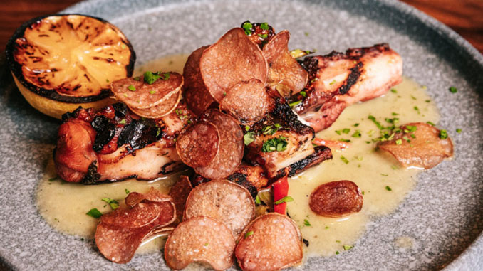 - Grilled Octopus — один из фаворитов гостей. Осьминог, приготовленный на гриле, подается с хрустящим картофелем, сельдереем и острым перцем. Завершает композицию нежный винный соус и капли выдержанного бальзамика.