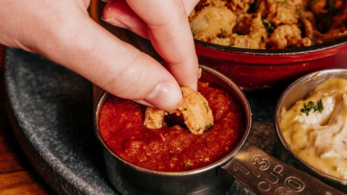 - Любители классики оценят Fried Mozzarella — хрустящий снаружи и тянущийся внутри сыр в пивном кляре, поданный с фирменной томатной маринарой.