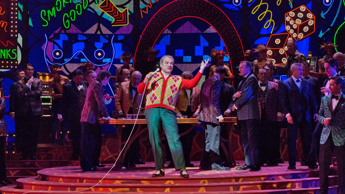 Майкл Майер переносит действие из Италии XVI века в Лас-Вегас шестидесятых. О достоинствах постановки говорить не приходится, зато с голосами все в полном порядке. Кроме звездного трио Лучич-Дамрау-Бечала отмечу словацкого баса Штефана Кочана в партии Спарафучиле и дебют в МЕТ белорусской певицы Оксаны Волковой в партии Маддалены.