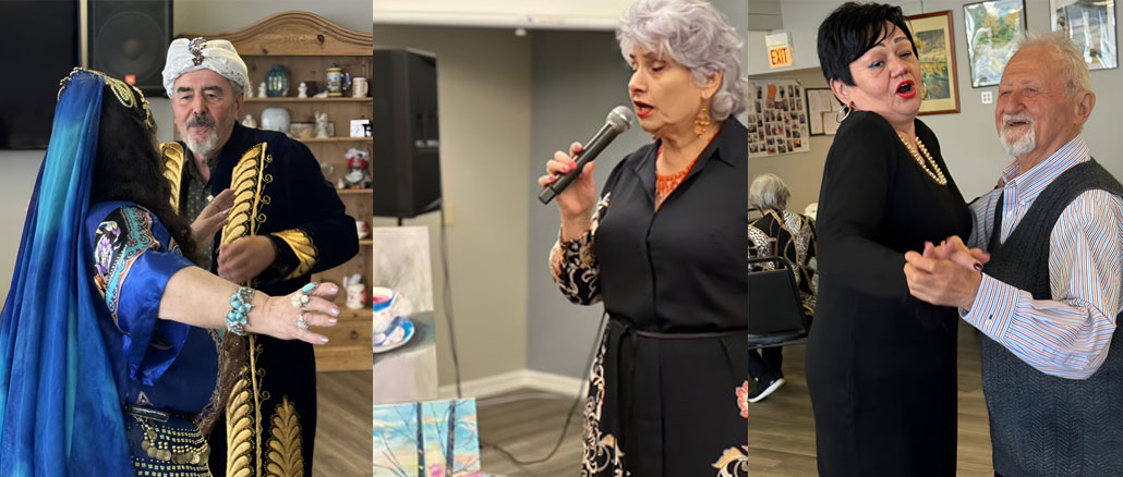 Активный участник Центра Марк Соколовский в образе султана и Людмила Хачатурян в роли его возлюбленной разыграли восточную сцену, подарив зрителям Центра яркое представление. Фото: В. Крупейченко; Ольга Чумак поёт на концерте в Центре Forever Young в Вилинге, увлекая зрителей на танцпол. Фото: Л. Туржель; Израиль Штейнберг — один из самых любимых партнёров в Центре, который не даёт женщинам оставаться в стороне и всегда приглашает на танец. Фото: В. Крупейченко