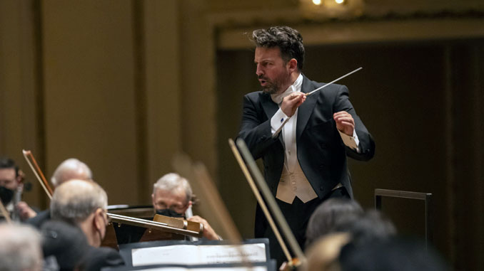 Маэстро Джеймс Гаффиган родился в Нью-Йорке в 1979 году. Учился в консерватории Новой Англии (Бостон) и Высшей школе музыки Шепарда в университете Райса (Хьюстон). Его карьера пошла вверх после победы на Международном конкурсе дирижеров имени Г.Шолти (2004 год). С 2003 до 2006 года Гаффиган работал дирижером-ассистентом Кливлендского симфонического оркестра, с 2006 до 2009 года был на аналогичной позиции в Симфоническом оркестре Сан-Франциско. После шести лет ассистирования Ф.Вельзеру-Месту и М.Тилсону-Томасу ушел в свободное плавание. С 2010 до 2021 года возглавлял старейший оркестр Швейцарии — Люцернский симфонический. Мы дважды слышали этот коллектив на Музыкальном фестивале Равиния.