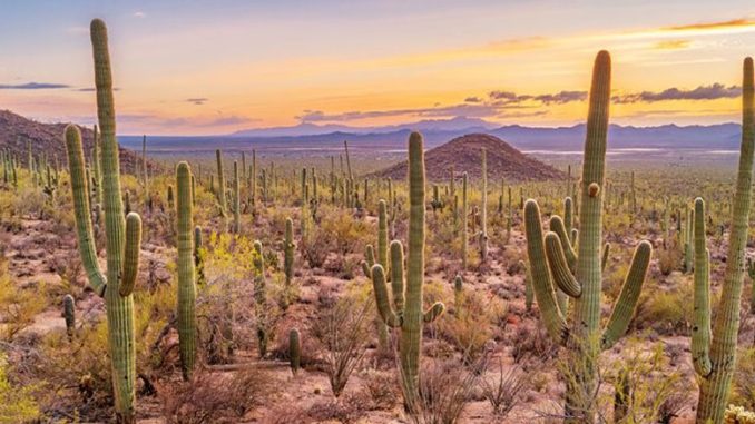 Кактус saguaro — символ юго-запада Америки. Отростки, вздернутые как руки к небу, придают ему монументальную выразительность. Его образ легко узнаваем любым американцем. Вероятно поэтому этот мощный гигант, который украшают лишь сезонные цветы, величают “монархом пустыни”. Когда такое великолепие встречается сконцентрированным на большой площади, оно достойно получить статус национального парка, что и произошло в октябре 1994 года.