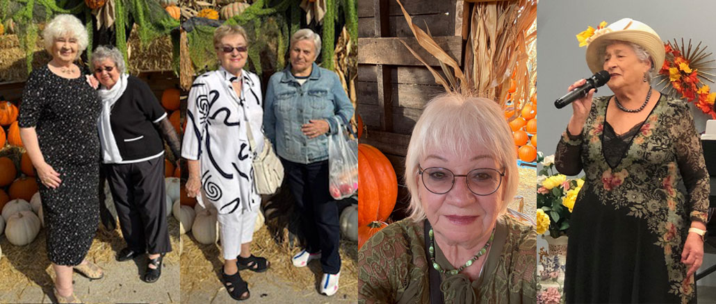 Ольга Михалкова и Светлана Копейка среди осенних красок — тёплая встреча в преддверии праздника. Фото: В. Крупейченко; Анна Ратнер и Тамара Матусевич в окружении осенних тыкв и ярких красок — настроение праздника уже рядом. Фото: В. Крупейченко; Осень, яркий свет и Вера Крупейченко в кадре — настроение праздника уже здесь. Фото: В. Крупейченко; Мира Иоффе — в осеннем настроении и с песней, которая согрела весь зал. Фото: Л. Тургель